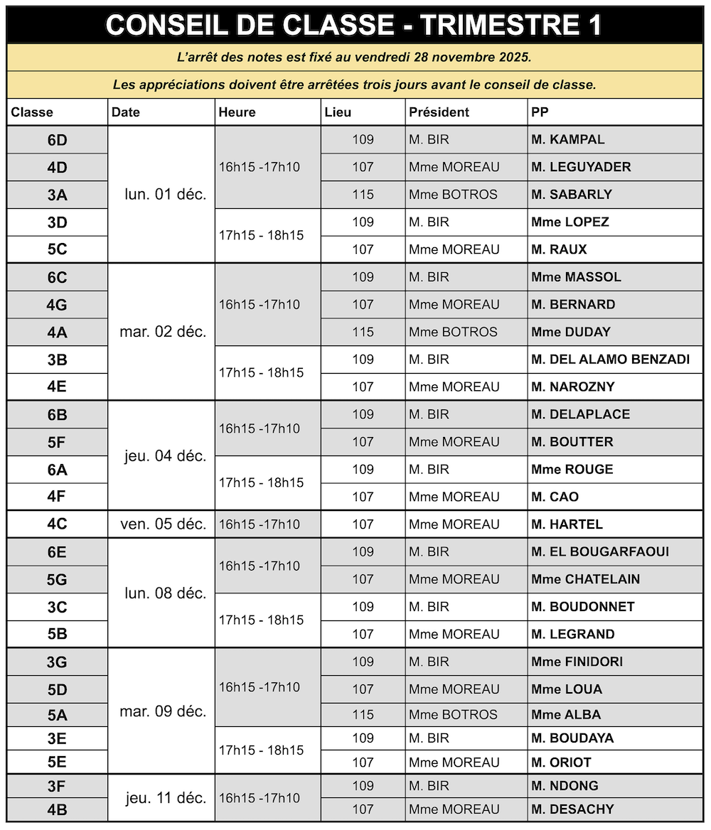 L’arrêt des notes est fixé au vendredi 28 novembre 2025.